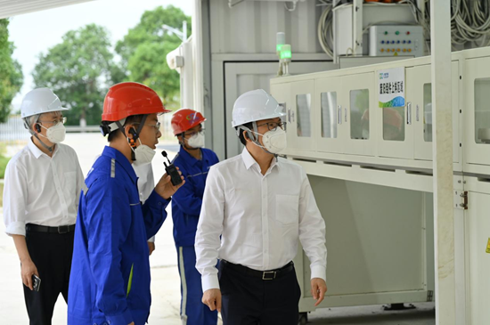 在鄂期間,廖家生還赴太陽能公司華中區(qū)監(jiān)利電站實地調(diào)研,詳細(xì)了解了光伏組件回收裝備生產(chǎn)運行流程和關(guān)鍵技術(shù),參觀了光伏項目現(xiàn)場、主控室和科技創(chuàng)新示范區(qū),與一線技術(shù)和運維人員深入交流,并指導(dǎo)市場拓展、科技創(chuàng)新、精益管理、隊伍建設(shè)、基層黨建等工作。