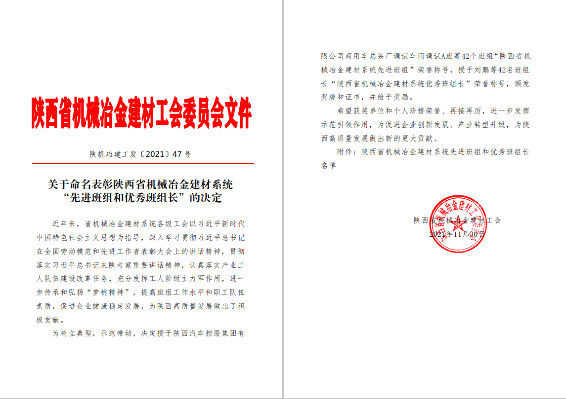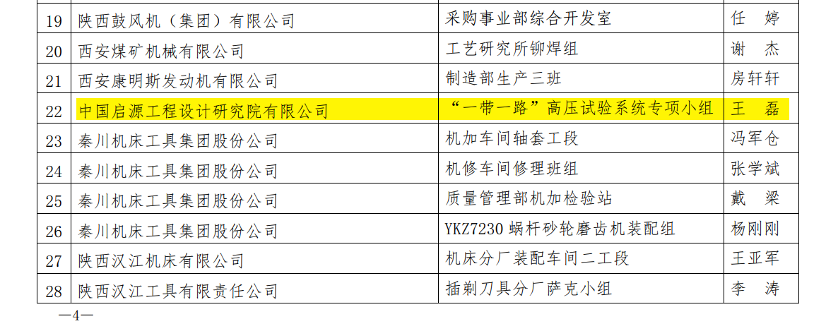 近日,陜西省機械冶金建材工會發布了《關于命名表彰陜西省機械冶金建材系統 “先進班組和優秀班組長”的決定 》(陜機冶建工發〔2021〕47號 )。中國啟源“一帶一路”高壓試驗系統專項小組榮獲“先進班組”稱號,下屬啟源設計王磊同志被授予“優秀班組長”稱號。