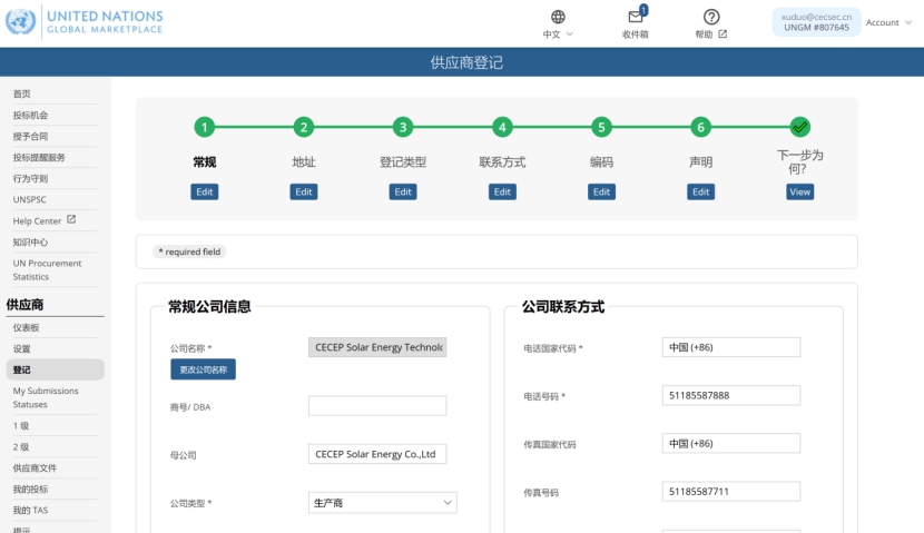 近日,太陽能鎮江公司成功注冊為聯合國采購一級供應商,可參加世界貿易組織、聯合國項目事務署、貿易中心、亞行等聯合國22個組織機構的招投標。此次成為聯合國采購供應商,是企業自身軟實力、影響力的體現,為增加企業知名度、拓展國際市場奠定了堅實基礎。