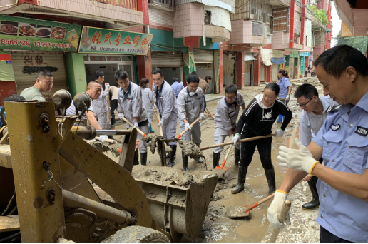2020年8月17日,金堂縣出現50年一遇的大洪水。水情來臨,縣城內多處道路受淹,交通中斷,一場與時間賽跑、與洪水鏖戰的生命大營救十萬火急!奔騰的洪水中,沖鋒舟、橡皮艇,大船小船不斷“接力”轉移,將低洼區域群眾第一時間送往各個臨時安置點。面對汛情險情,8月19日早上,金堂黨支部接到園區的險情通知后,黨支部書記李豫軍同志立即集結廠內所有黨員、積極分子、團員,迅速成立金堂黨支部黨員突擊隊參與到抗澇清淤工作中。出發前支部書記給大家做了安全總動員,要求大家在保證安全的前提下,為抗澇清淤貢獻自己最大的力量。黨員同志們到達現場后,人手一把鐵鍬,積極投入到抗澇清淤的工作中。洪水過后的街道臭氣熏天,到處都是高達一米厚的淤泥,受災商鋪里面淤泥與桌椅、板凳融為一體。看到這一切,有的同志們眼里泛著淚花,都說天災無情,這一刻,大家深深的體會到了人類在洪水面前的渺小。“早一天完工,街道就會早一天恢復熱鬧,同志們:加油干!”書記說完,就帶頭帶領著黨、團員同志們迎難而上。大家先是把厚厚的淤泥鏟到一起堆放,待挖掘機到達現場后,再一鏟一鏟的把淤泥鏟進挖掘機的挖斗里,由挖掘機將這些淤泥倒入沱江里面。打掃完街道,灑水車就會對街道進行一遍一遍的沖洗。當時的天氣氣溫高達34度,參與救災的同志們穿著厚重的雨靴在厚厚的淤泥里艱難地來回走動著,手里的鐵鍬與地面摩擦發出悅耳的聲音,仿佛在感謝著這些黨員同志們為自己清洗干凈了“身體”。黨員同志們臉上、身上到處都是淤泥,額頭上冒著豆大的汗珠,汗水也將身上的衣服浸透,在這種惡劣的環境下,大伙兒還打趣的說:這樣挺好,進行了一次免費的“桑拿”。在金堂淮口濱河花園清淤片區,金堂公司黨、團員分兩批共30余人持續奮戰,商家也自發開展清掃工作、整理貨物、排除隱患、沖洗地面……全城“總動員”的畫面讓人動容。8月19日傍晚,金堂上空出現的絢麗彩虹,也在向人們述說著,風雨已經過去,未來更加美好!金堂黨支部的黨、團員同志們在此次抗澇清淤工作中充分發揮不怕臟,不怕累,不怕苦的先鋒模范精神。金堂黨支部也在確保園區防汛工作有序可控的同時,繼續秉持著“產業報國,實干興邦”的精神,與金堂人民團結一心,共抗洪水險情!