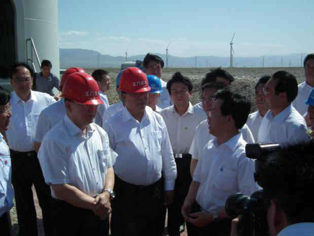 2011年7月,中央政治局常委李長(zhǎng)春到中國(guó)節(jié)能玉門昌馬風(fēng)電場(chǎng)調(diào)研工作,對(duì)中國(guó)節(jié)能助力酒泉千萬千瓦風(fēng)電基地建設(shè)給予高度肯定。