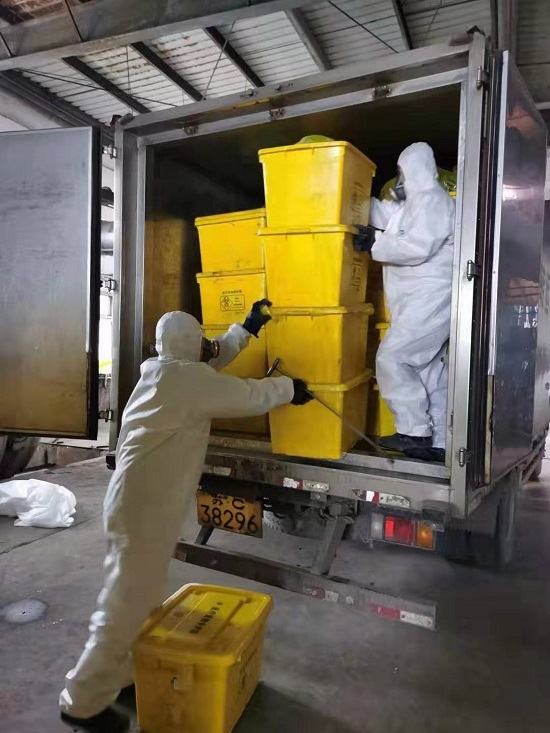 強調(diào)醫(yī)療廢物收運及處置安全要求 疫情就是命令,狠抓落實保安全 自1月21日起,徐州公司疫情應(yīng)急小組每日召開調(diào)度會,及時傳達各級環(huán)保部門及上級單位相關(guān)文件,掌握疫情動態(tài),并上報應(yīng)急處理及防控情況;班組每日召開晨會強調(diào)醫(yī)療廢物收運及處置安全要求;確保各項應(yīng)急物資供應(yīng)、到位;根據(jù)疫情情況,每日增加對廠區(qū)、處置車間的消毒次數(shù)。 1月25日,在得知徐州已有確診病例后,公司立即啟動應(yīng)急預(yù)案及相關(guān)措施:一是合理調(diào)整及安排人員休假,保證各項工作調(diào)度有序;二是在保障處置醫(yī)療廢物能力的同時,調(diào)整醫(yī)療廢物處置工藝,減少員工與醫(yī)療廢物接觸頻次;三是嚴(yán)格執(zhí)行醫(yī)療廢物和相關(guān)設(shè)施的消毒工作,對操作人員的防護和體溫進行持續(xù)監(jiān)測;四是做好員工的思想工作,穩(wěn)定員工隊伍,并做好隔離防護;五是及時掌握疫情發(fā)展動態(tài),對已有確診病例的醫(yī)院安排專人、專車收集,減少直接接觸;六是拓寬防護物資采購渠道,切實保障物資供應(yīng),同時做好出入庫登記。