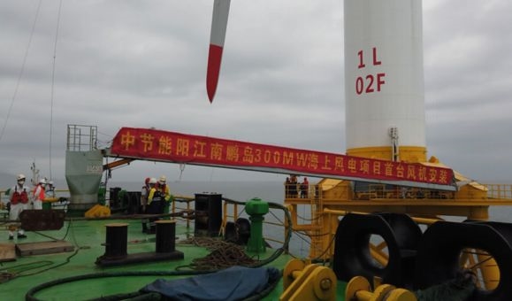 中國節(jié)能陽江海上風(fēng)電項(xiàng)目首臺(tái)5.5兆瓦風(fēng)機(jī)吊裝成功 |